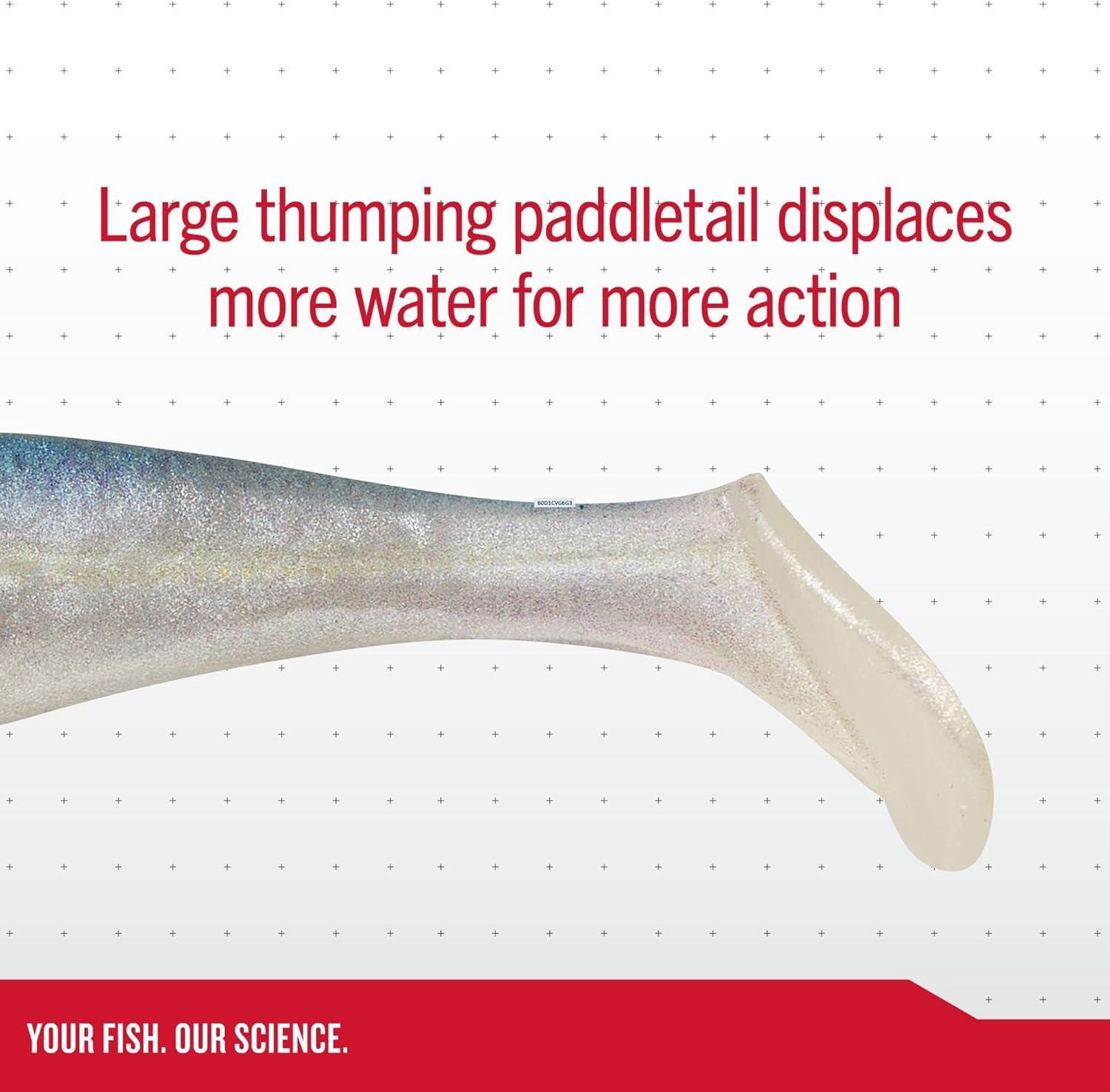 THUMPING TAIL ACTION: The Champ soft bait features a large thumping paddletail that displaces more water for more action.