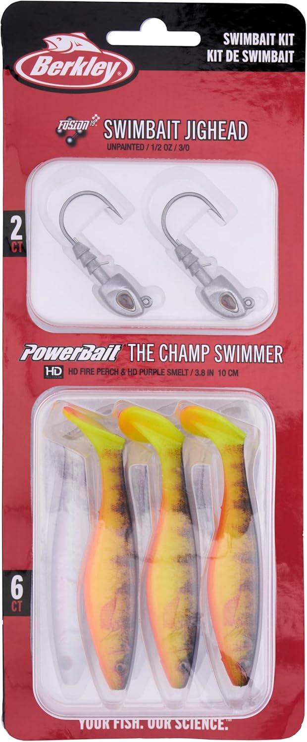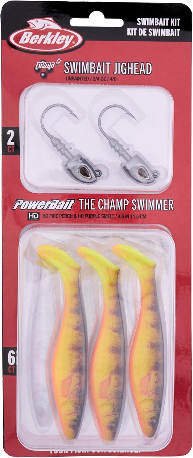 BERKLEY POWERBAIT THE CHAMP SWIMMER KIT: Designed by two time Bassmaster Classic winner Jordan Lee, The Champ Swimmer is deadly on bass and walleye.